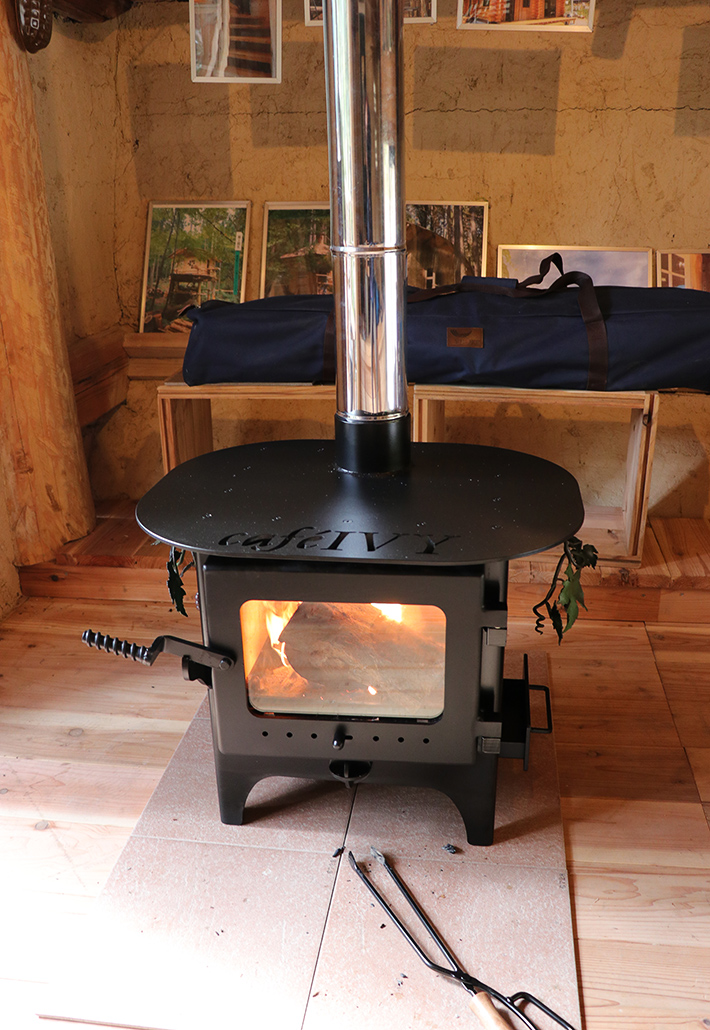 ツリーハウスに設置されたこの小さな薪ストーブは、自然との調和と心地よい温かさを両立する特別な存在です。 狭い空間に最適なコンパクトなデザインでありながら、十分な暖かさを提供し、ツリーハウス全体を快適よい温もりで包み込みます。ツリーハウスでのひとときをより特別にし、来場者に忘れられない思い出を提供します。