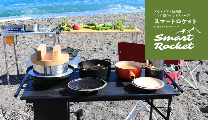 短時間で高温になるロケットストーブの「調理用コンロ」。簡単に組立が行える構造のため、キャンプやイベントにも持ち運べます。羽釜で炊飯、オーブンでピザを焼くなど、いろいろな料理が楽しめます。